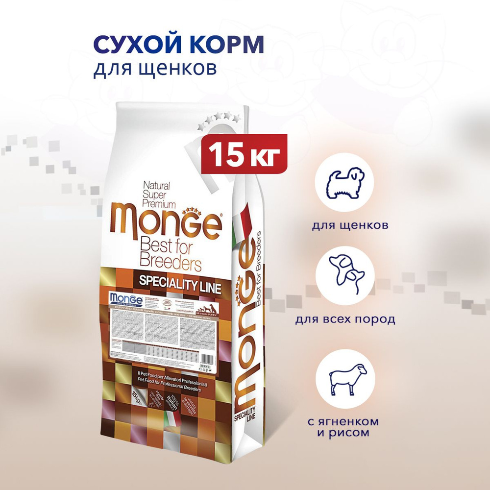 Выбрать и купить Корм для щенков MONGE Dog Speciality всех пород ягненок с рисом сухой 800г недорого с доставкой