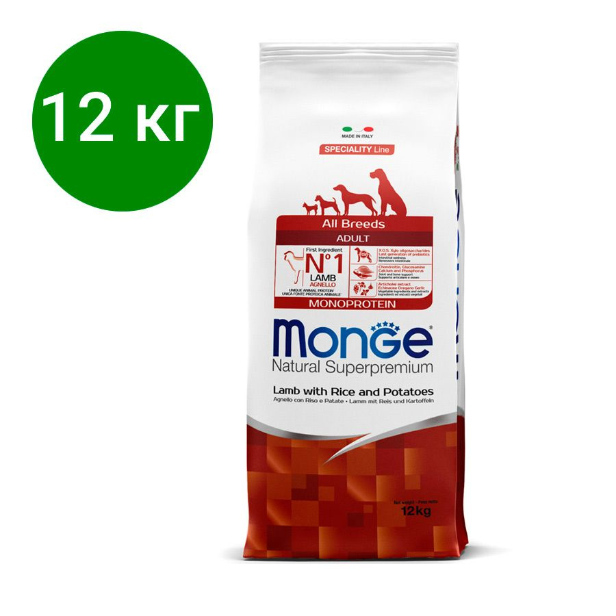 Корм сухой Monge Dog Monoprotein All Breeds Adult Lamb для взрослых