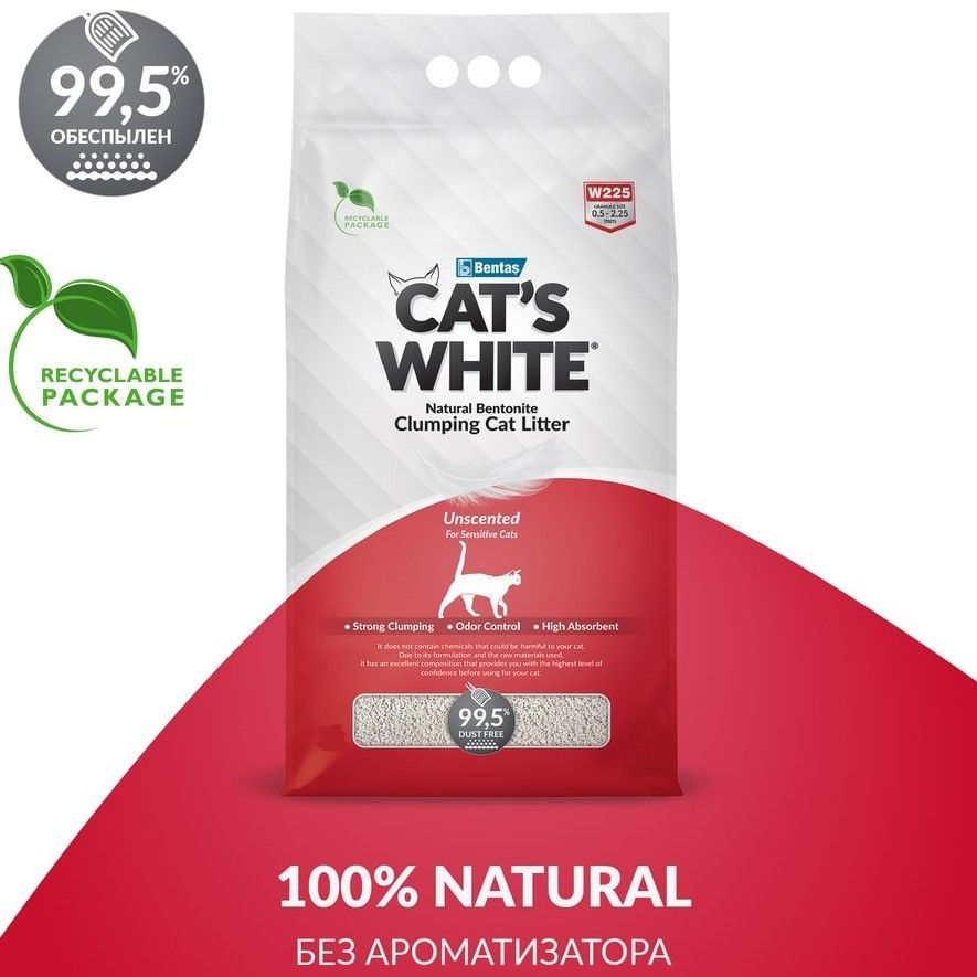 Наполнитель Глиняный CAT'S WHITE Комкующийся Без отдушки 4250г