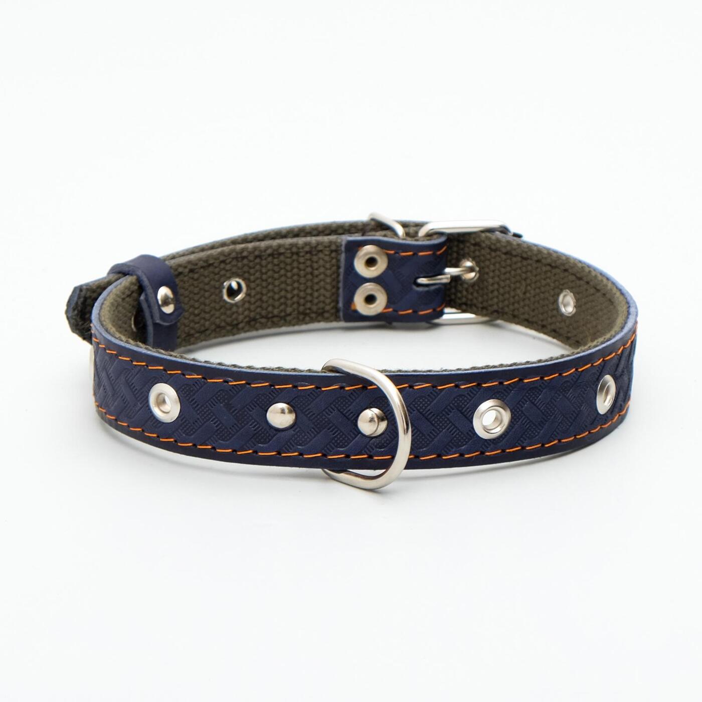Ошейник комбинированный кожа/брезент, безразмерный, 56*2,5 см, синий