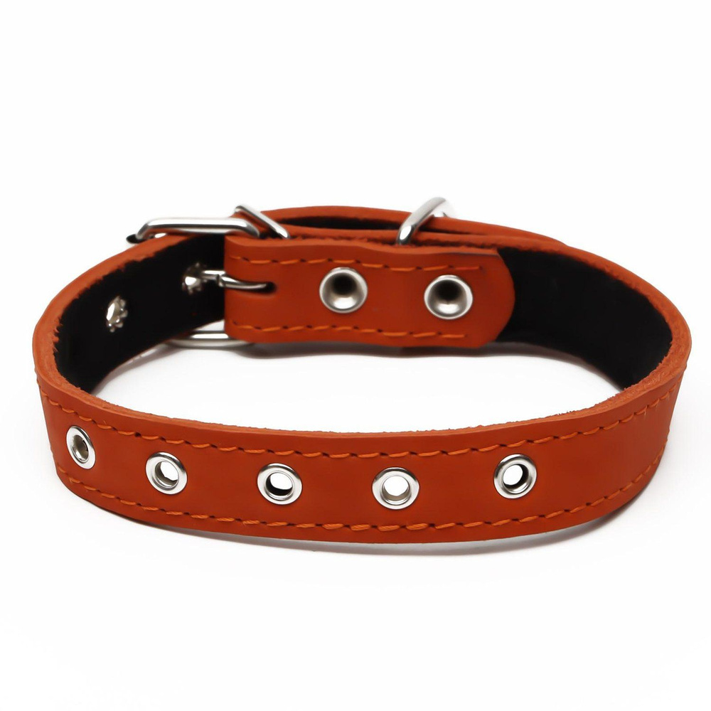 Ошейник Пижон кожаный на синтепоне безразмерный 54 х 2.5 см оранжевый