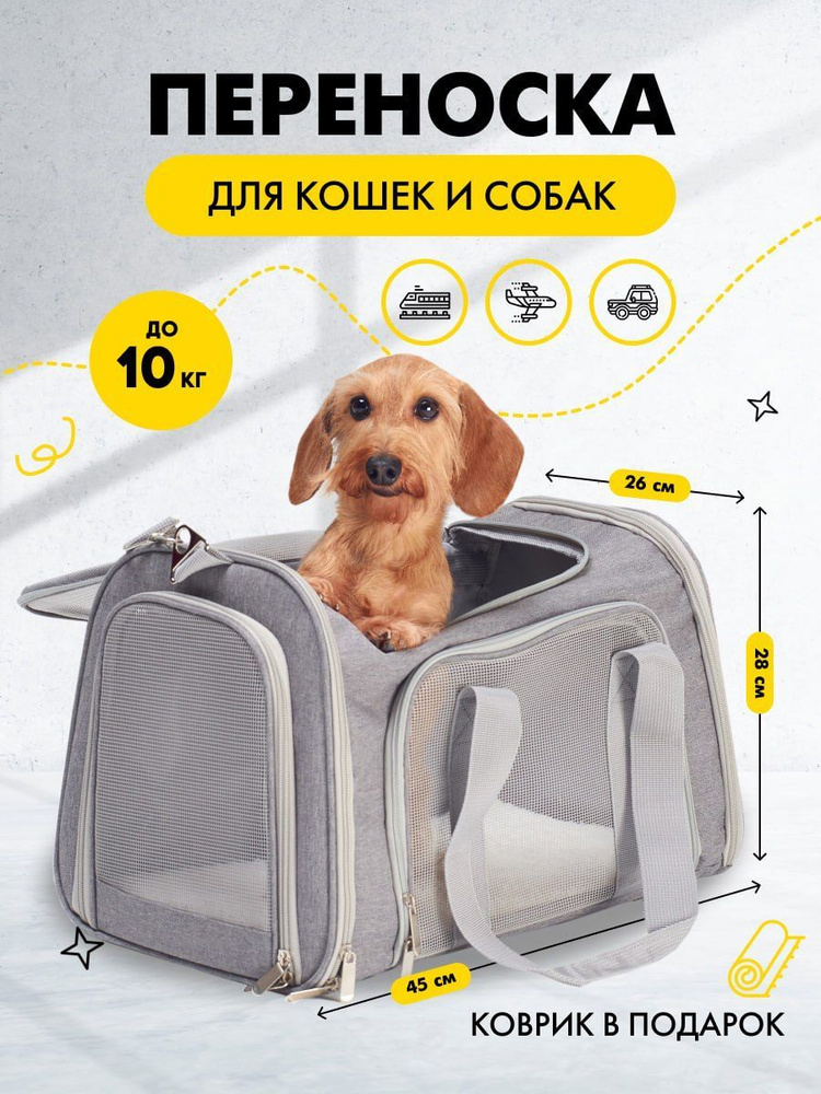Сумка переноска для животных, кошек и собак мелких пород, серая. До 10