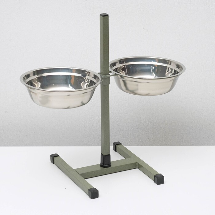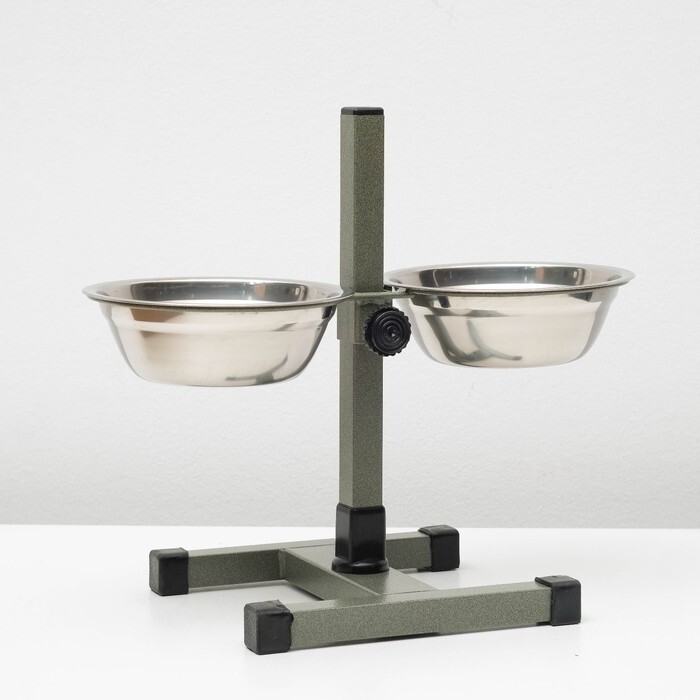 Подставка с мисками, 2 х 500 мл, высота 30 см, разборная, серо-зелёная