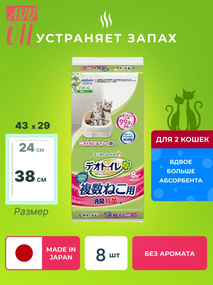Подстилка Unicharm дезодорирующая антибактериальная для биотуалета 8 шт