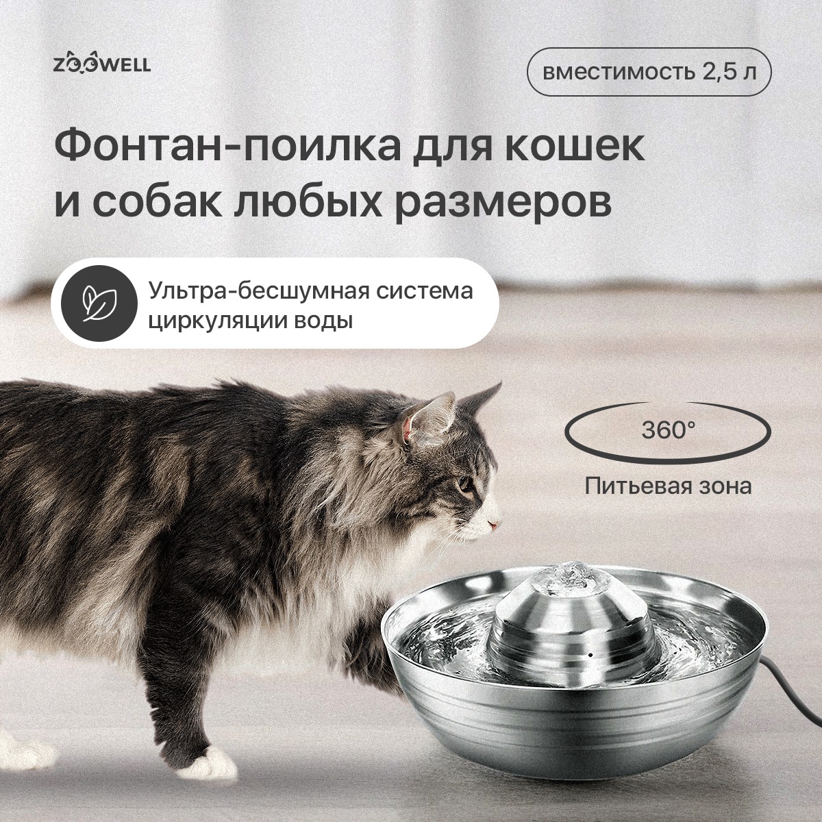 Купить автоматическая поилка-фонтан для кошек и собак ZooWell Smart из