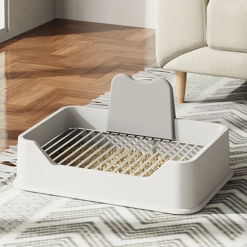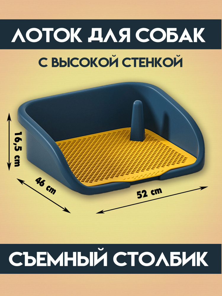 Туалет лоток для собак, с высоким бортом и боковым столбиком с сеткой
